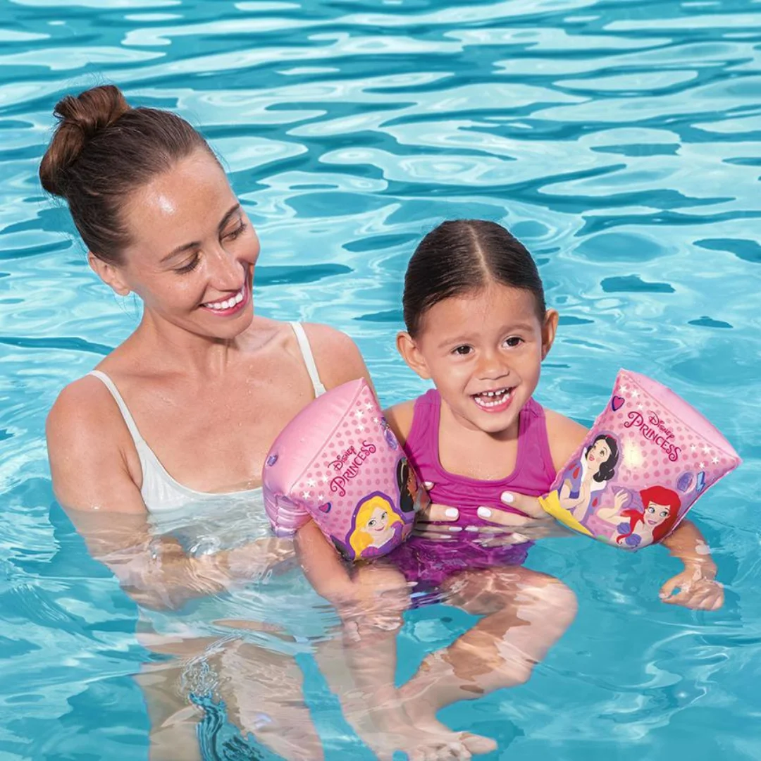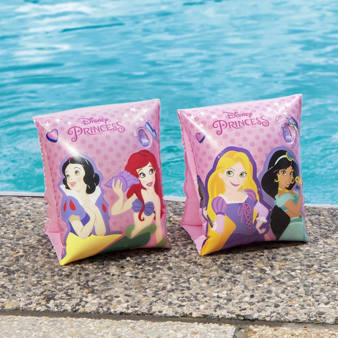 Flotador de brazo con diseño de princesas, este flotador de brazo está hecho a base de plástico resistente, además cuenta con un diseño colorido que le sacará una sonrisa a tu hijo e incentiva sus habilidades acuáticas.