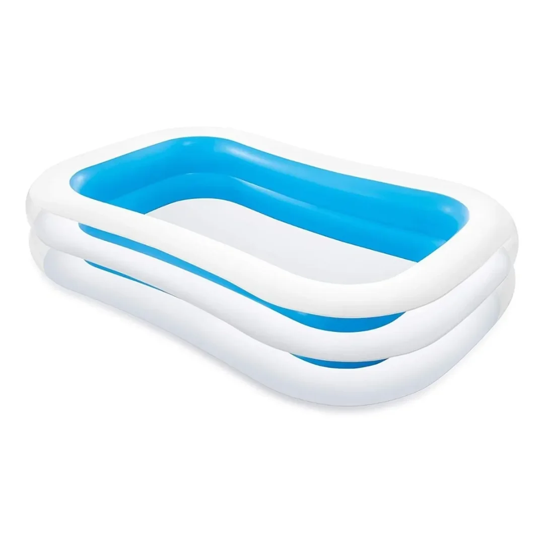 Piscina inflable de forma rectangular Intex pensada para darte un baño mientras disfrutáis todos juntos de divertidas tardes en familia. Con esta piscina podrás estar pendiente de los más pequeños a la vez que jugáis.